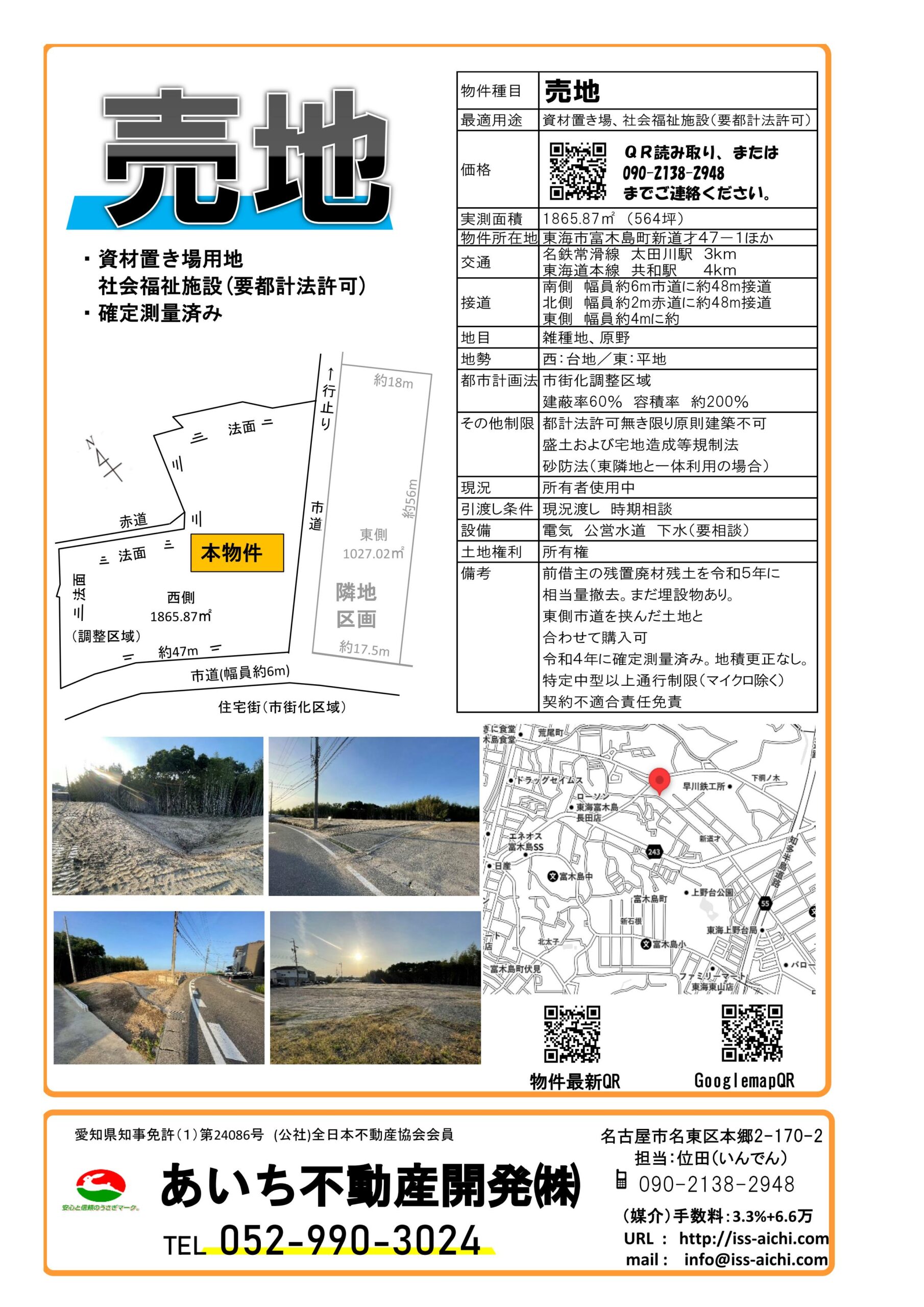 東海市富木島町の資材置き場用地の